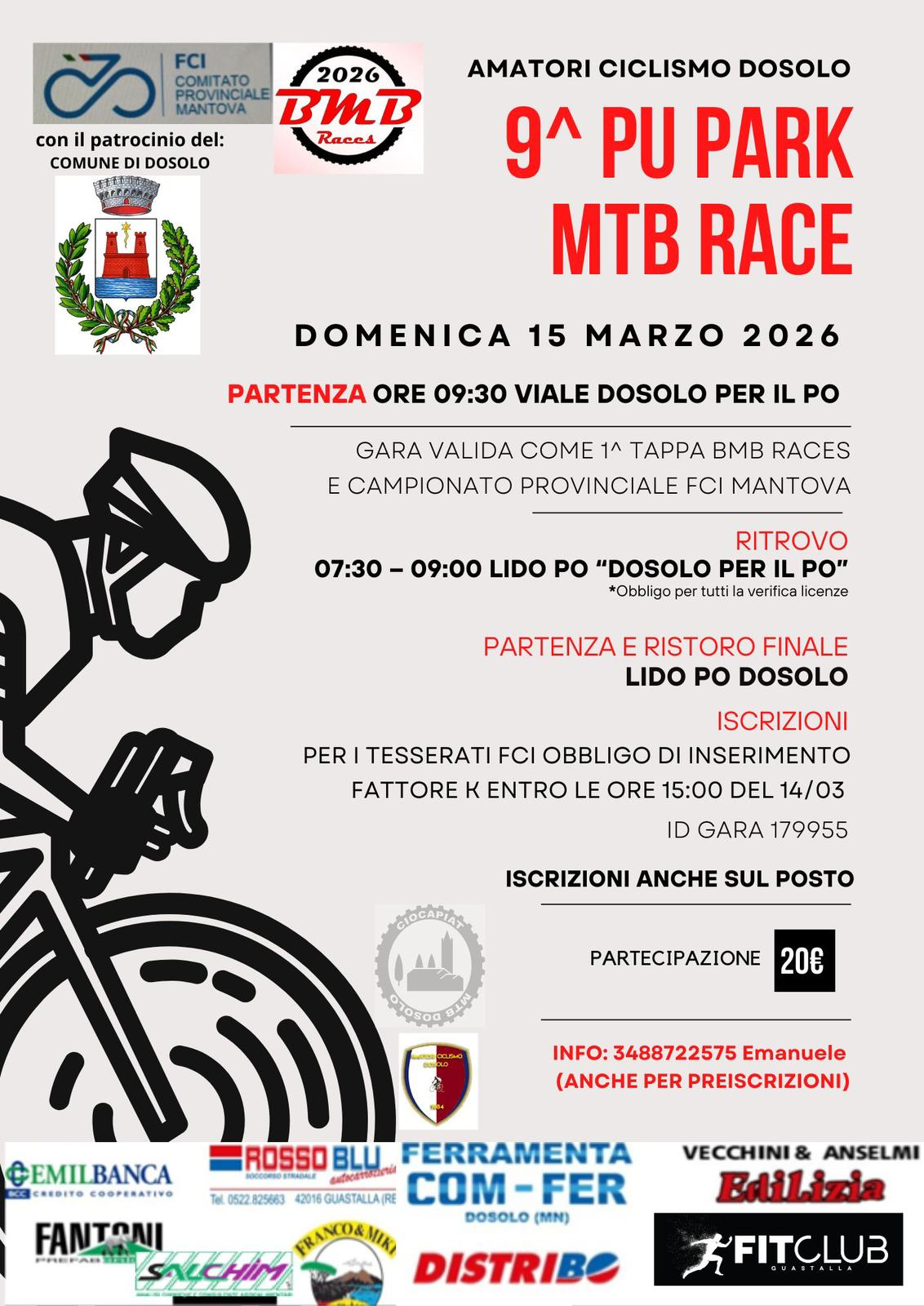 PAGAMENTO: € 20,00 al ritiro del numero